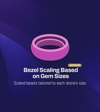 Le changement de taille de bague, l'une des fonctions Matrix les plus puissantes, a maintenant été amélioré pour MatrixGold. Ajoutez votre conception à l'outil Ring Resizer, sélectionnez les tailles souhaitées et cliquez sur le bouton Changer la taille de la bague. MatrixGold crée des designs agrandis en quelques secondes sans affecter les dispositions de gemmes.